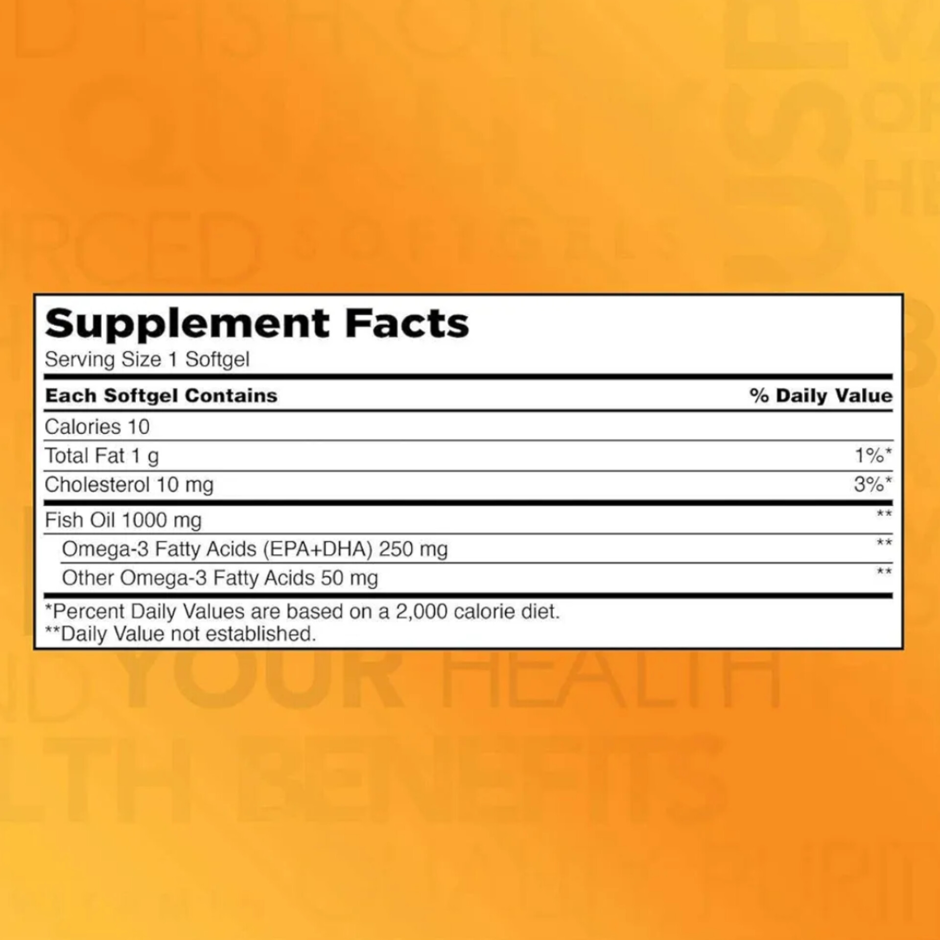 این محصول با ارائه 1000 میلیگرم روغن ماهی طبیعی در هر کپسول، حاوی 300 میلیگرم اسیدهای چرب امگا 3 شامل EPA و DHA است که برای حفظ سلامت قلب و بهبود عملکرد بدن ضروری هستند.
