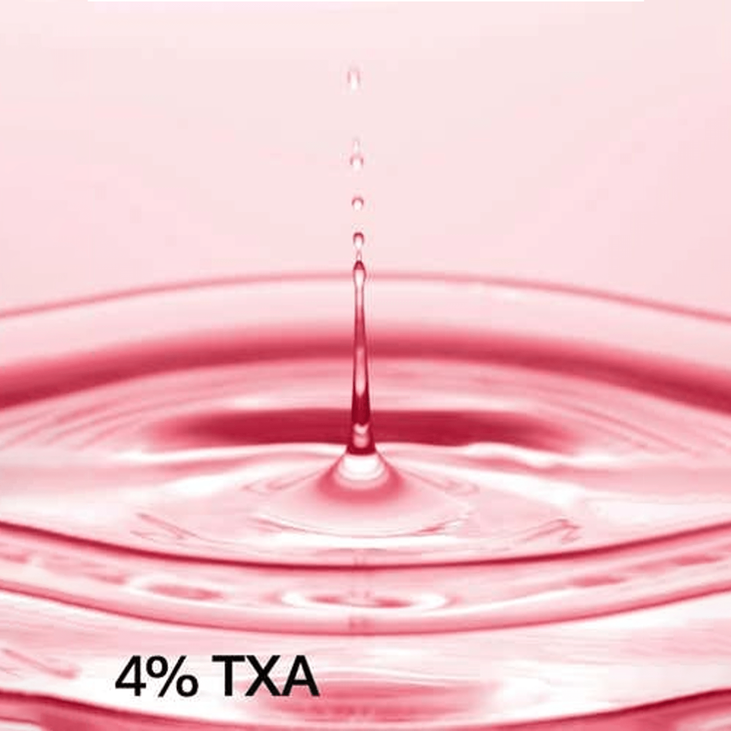 4% TXA(ترانگزامیک اسید): این ترکیب پوست را شاداب، درخشان و متعادل کرده و از بروز تیرگی جدید جلوگیری می‌کند.