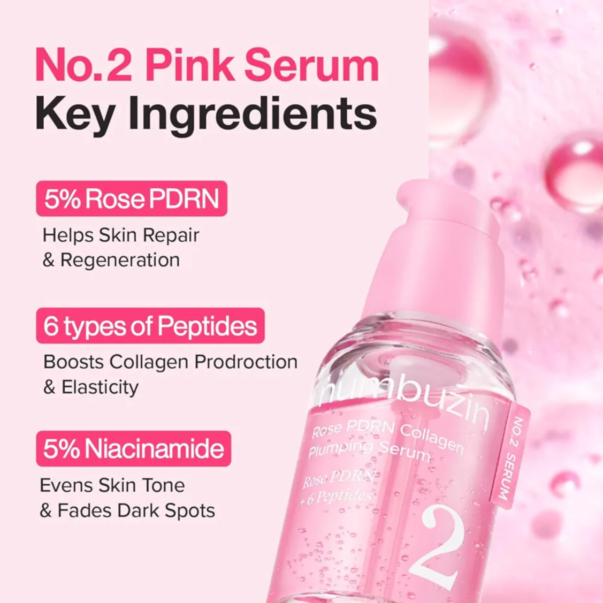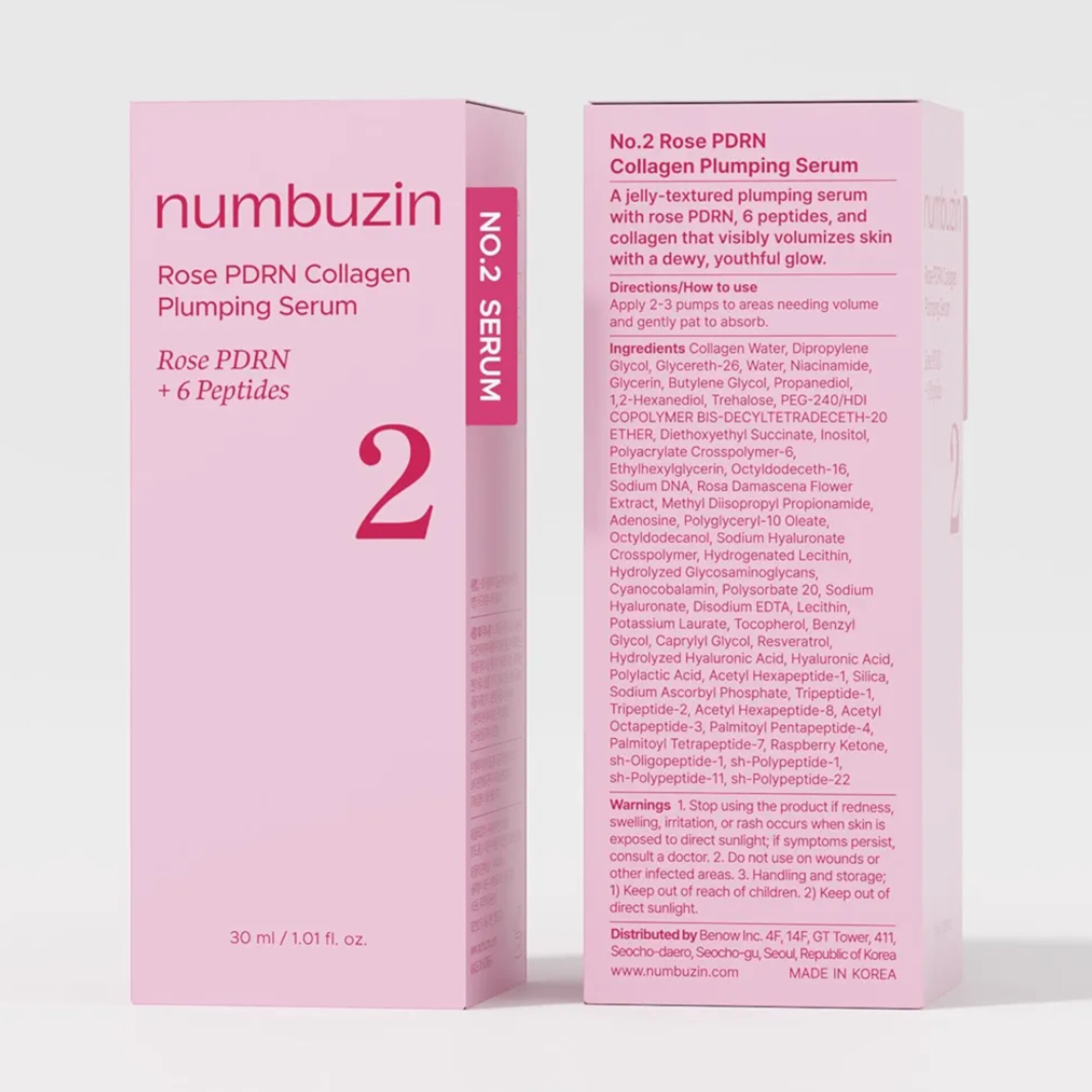 سرم کلاژن رز PDRN پلامپینگ شماره 2 نامبوزین با بافت ژلهای سبک و فرمولاسیون پیشرفته، حاوی 5٪ رز PDRN و 6 نوع پپتید، راهحلی ایدهآل برای حجمدهی فوری و افزایش استحکام پوست است.