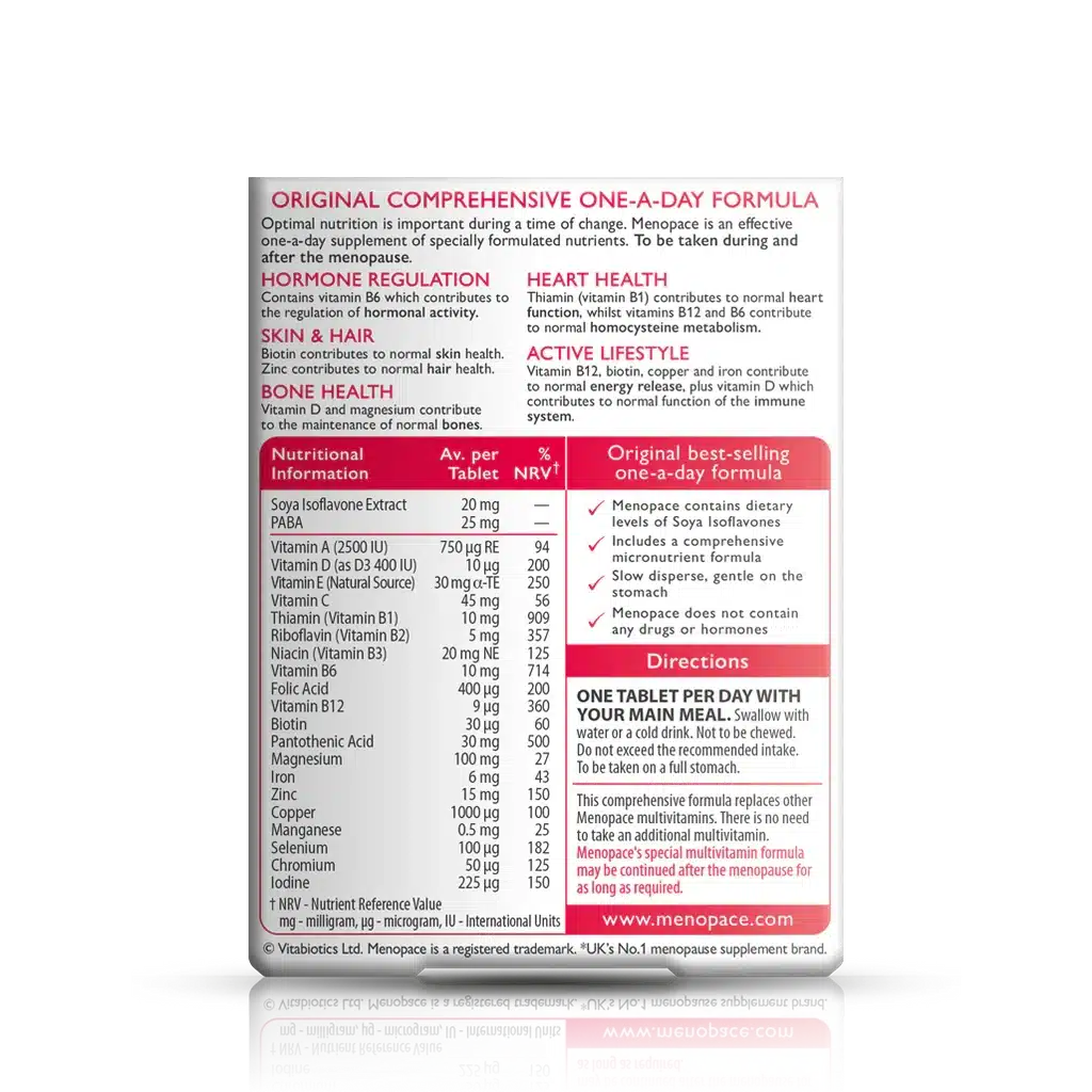 خواص مرتبط با سلامت منوپیس به ایزوفلاون های سویا منحصر نمیشود. قرص منوپیس ویتابیوتیکس با مجموعه ای از ویتامین ها و مواد معدنی فرموله شده که هر کدام سهمی جداگانه در سلامت دوره یائسگی خواهند داشت.