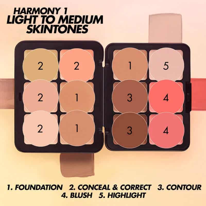 دارای 12 رنگ فوق العاده و متنوع است که 7 رنگ آن کانتور و کانسیلر، 2 رنگ رژگونه،