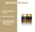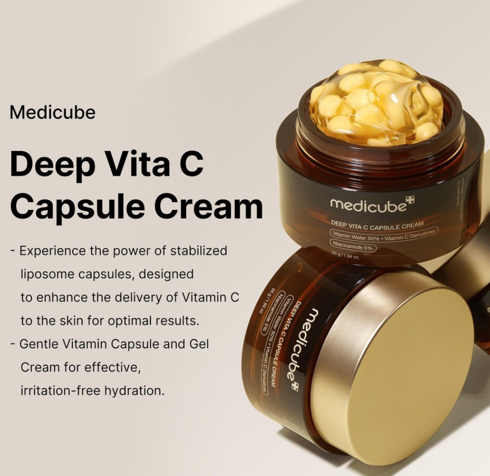 کرم کپسولی ویتامین سی محصولی جدید از برند مدی کیوب، ساخت کره است. این محصول دارای بافتی ژله ای بههمراه کپسولهای زرد رنگ ویتامین سی است که به اصلاح بافت پوست و بهبود خاصیت ارتجاعی آن کمک میکنند.