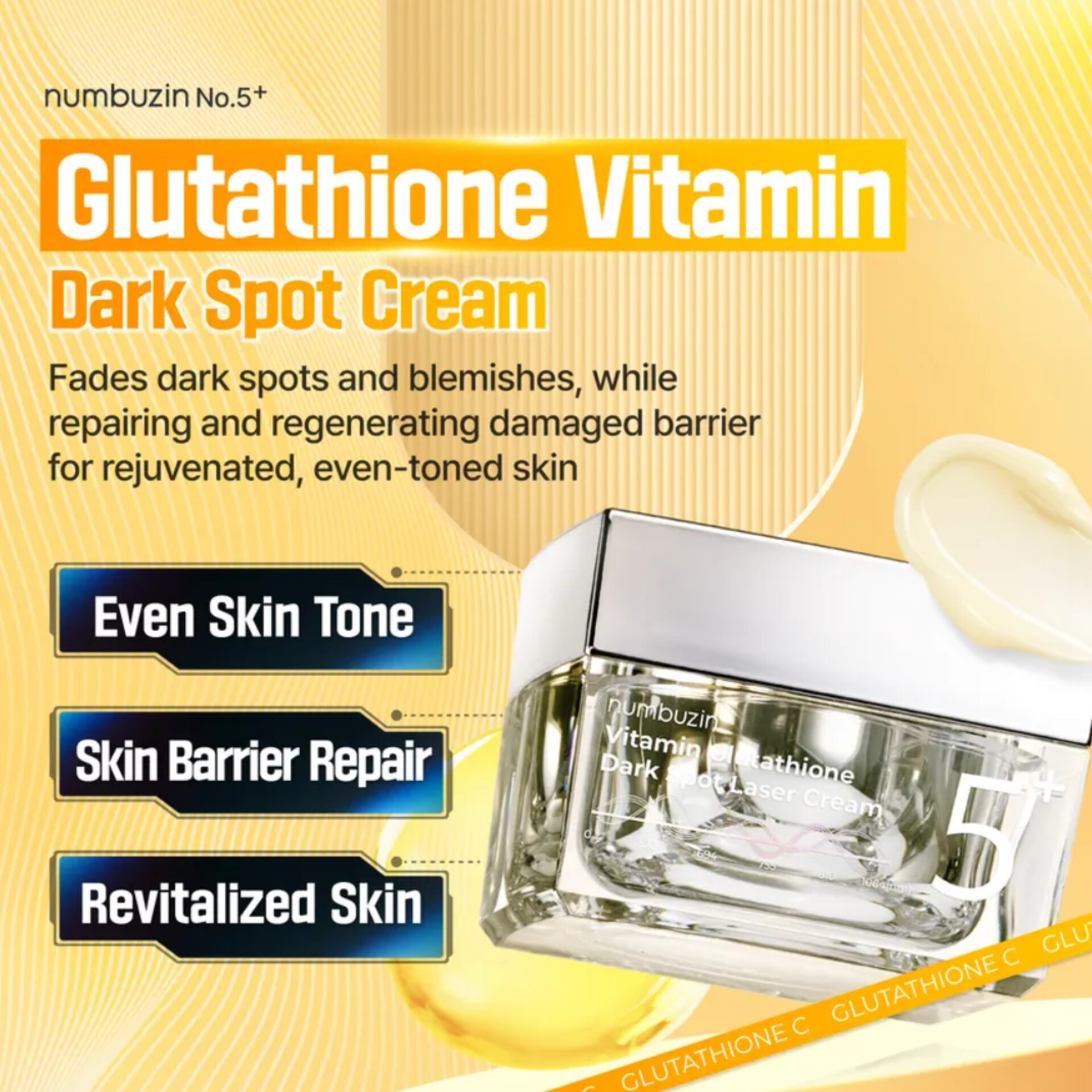 کرم لیزر ویتامین گلوتاتیون نامبوزین شماره 5 (numbuzin – No. 5 Vitamin Glutathione Dark Spot Laser Cream)، با فرمولاسیون پیشرفته و ترکیبات قدرتمند، به عنوان یکی از بهترین گزینهها برای روشن کردن پوست و رفع لکهای تیره شناخته میشود.