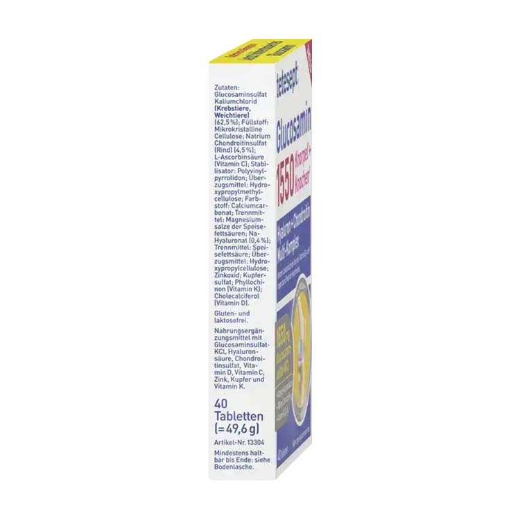 قرص گلوکزامین Tetesept 1600 از دیگر محصولات جدید شرکت تتسپت آلمان که با تغییراتی در تعداد ویتامین ها به خم شدن بهتر زانو پس از آسیب ناگهانی زانو بسیار کمک می کند.